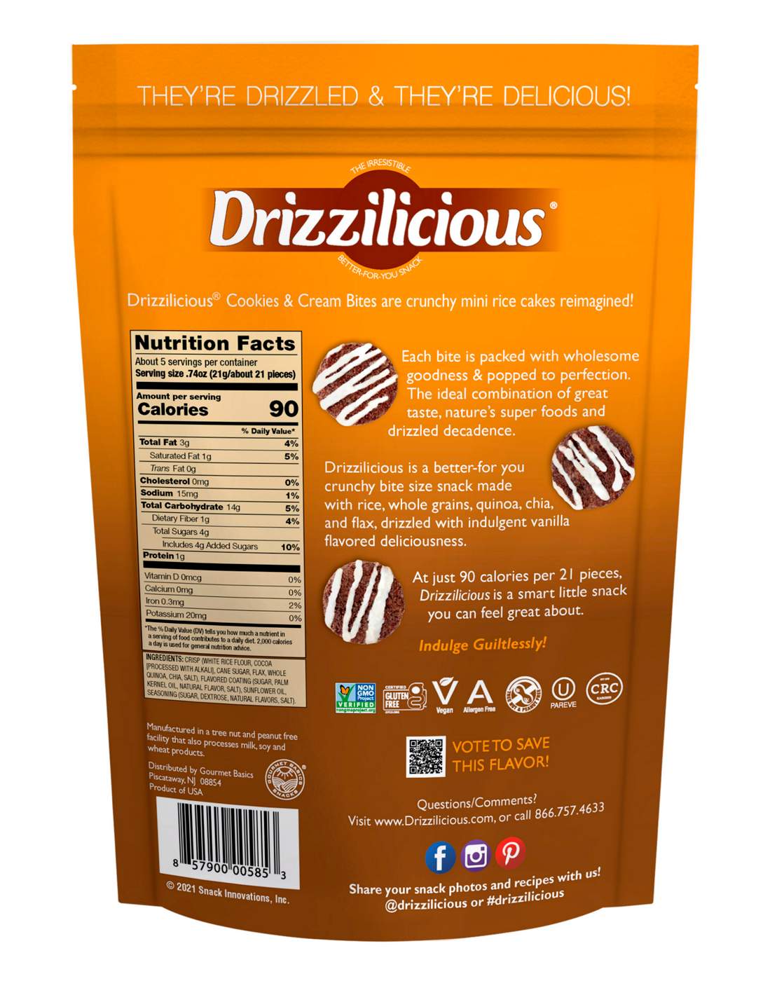 Drizzilicious Cookies and Cream Drizzled Mini Rice Cake Bites Shop Drizzilicious Rice Cakes Ingredients the ideal combination of great taste, nature's super foods and drizzled decadence. Popped to perfection and drizzled in white chocolate sauce. mini rice cakes & popcorn popped, drizzled, and seasoned in multiple delicious flavors. mini rice cakes & popcorn popped, drizzled, and seasoned in multiple delicious flavors. 90 calories, 21 pieces. 90 calories, nutrition grade (c. Drizzilicious Rice Cakes Ingredients.